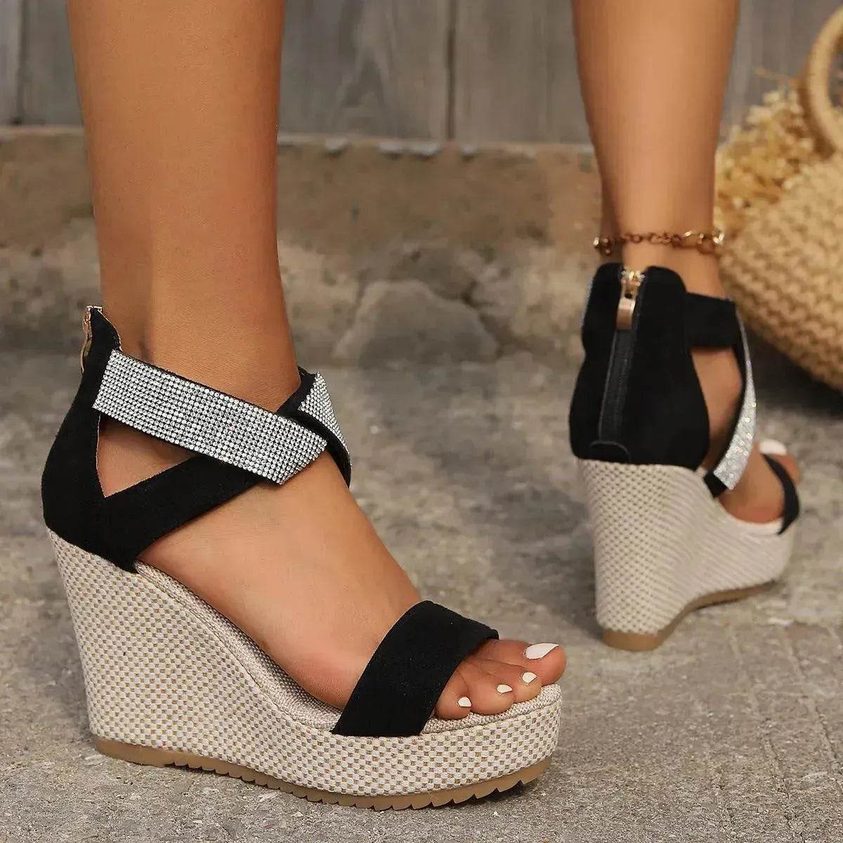 Fish Mouth High Wedges Sandals With Rhinestone Design Fashion Summer Platform Shoes For Women
