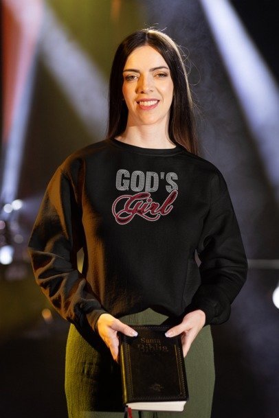 Show the world who you belong to with our God’s Girl Rhinestone Collection. Featuring dazzling, hand-placed rhinestones, this powerful design is available on soft t-shirts, cozy hoodies, long sleeve tees, and classic crewneck sweaters.