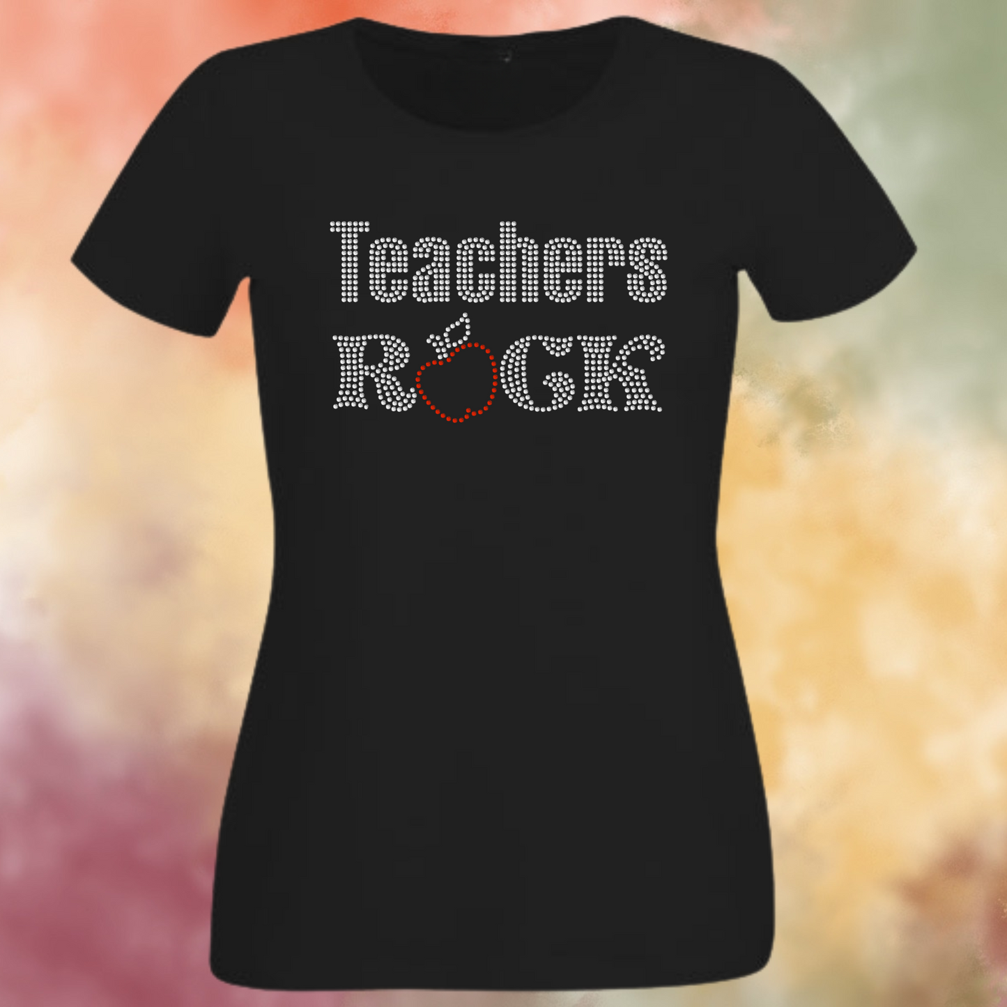 Celebrate the amazing educators in your life with our dazzling Teachers Rock with an Apple Rhinestone Apparel! Perfect for teachers who inspire, this top-quality apparel is adorned with premium rhinestones that sparkle as brightly as their passion for teaching. Whether you're in the classroom or at a school event, this standout piece lets everyone know just how much teachers rock.